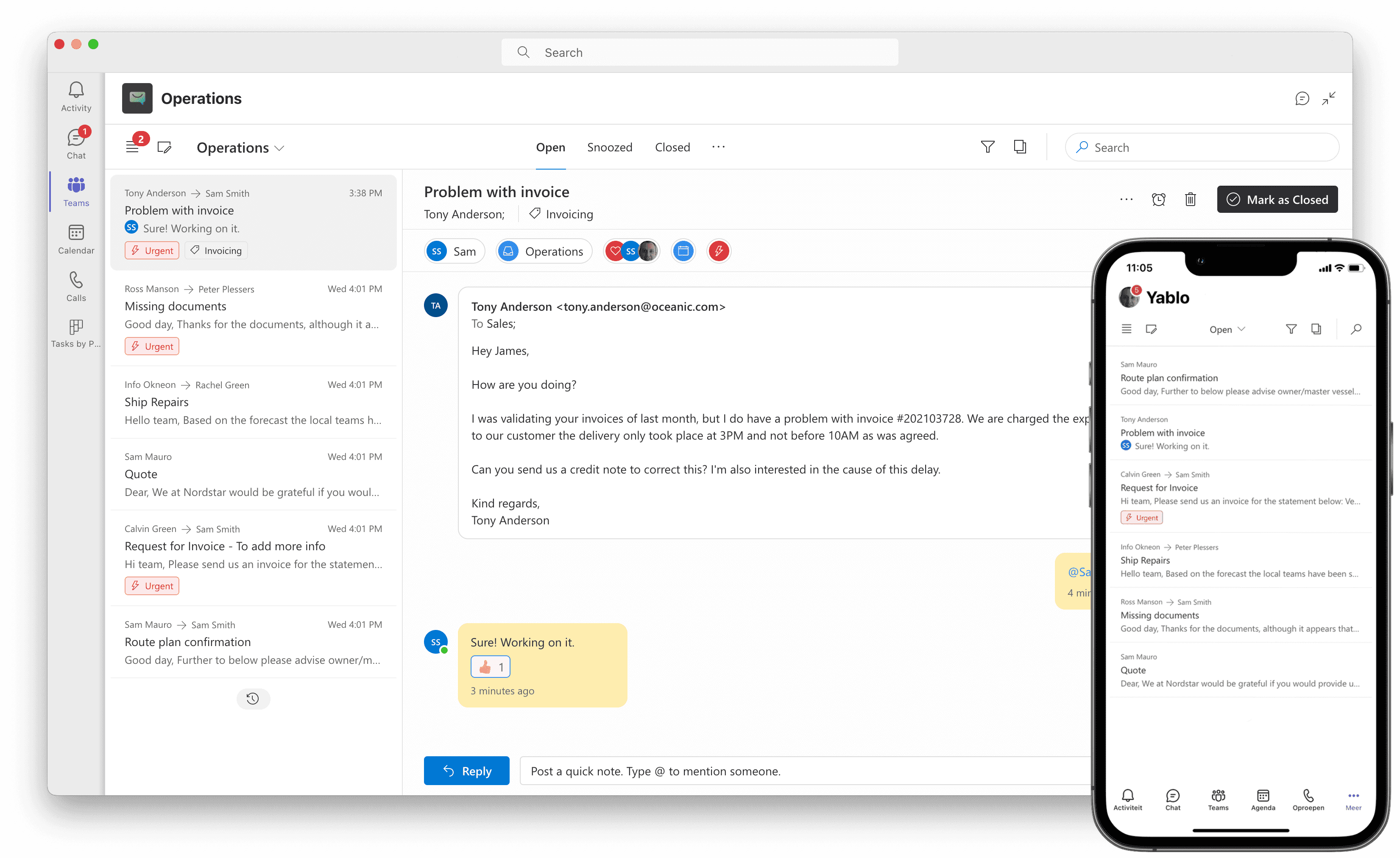 Yablo is a customer communication platform designed for Microsoft 365 that helps manufacturing companies manage, oversee and improve their customer communication. By facilitating seamless collaboration among teams spanning functions and geography, Yablo ensures a unified and consistent customer experience. Breaking down silos across teams, manufacturing companies can establish a highly efficient customer communication process from order to delivery.