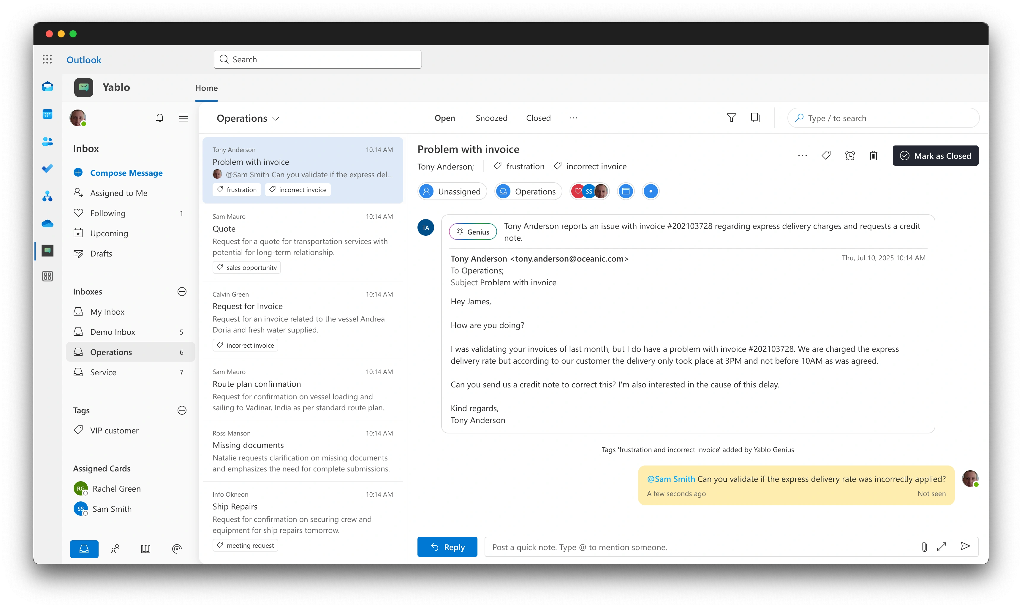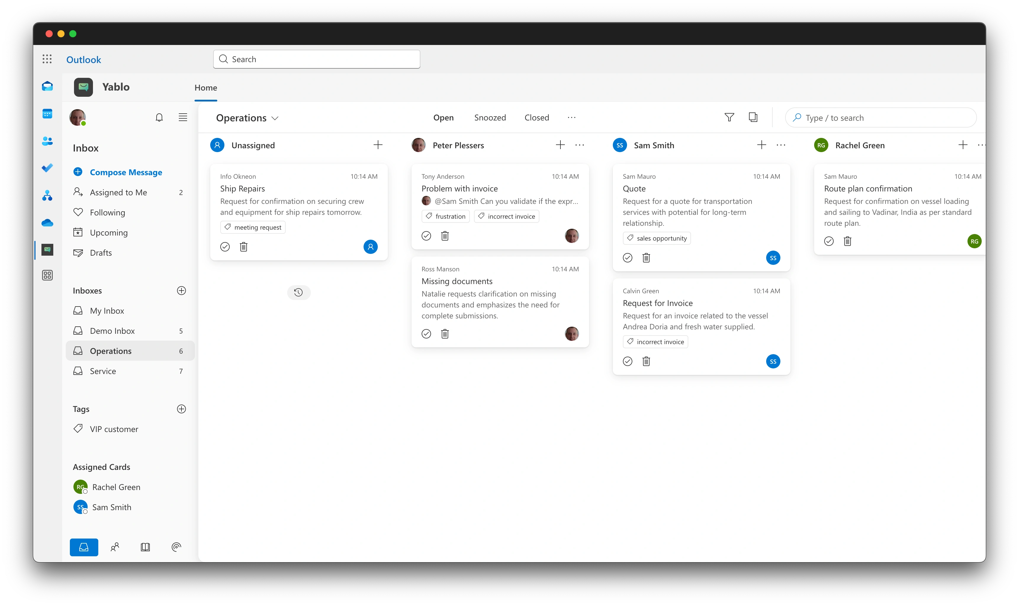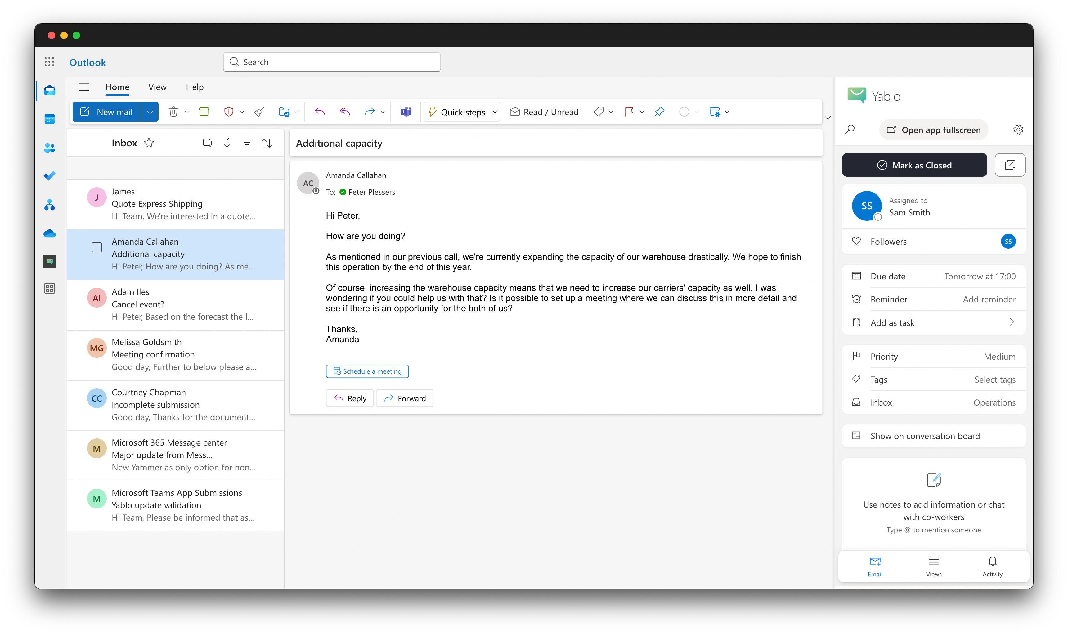 Yablo works right inside your Microsoft 365 tools, so your team can stay organized and deliver great customer service — without changing the way they already work.